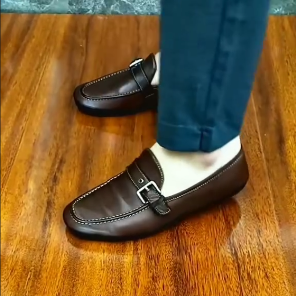 Men's New Buckle Strap Design Soft Leather Shoes