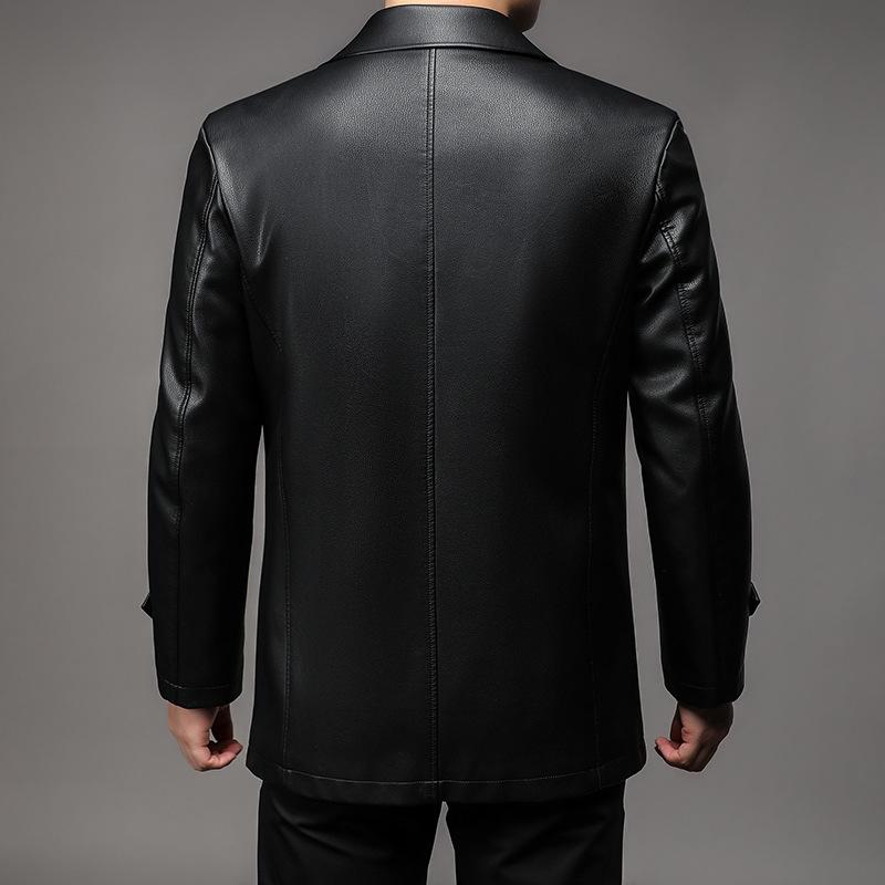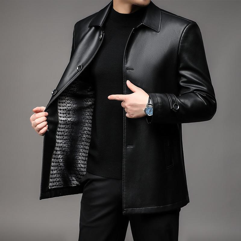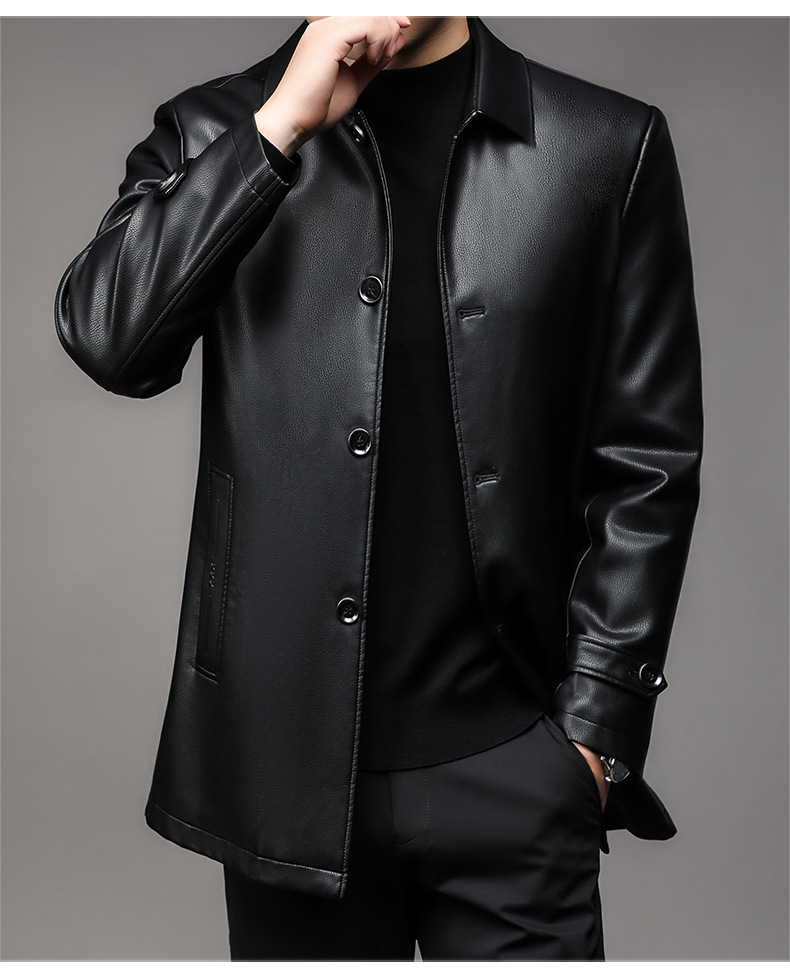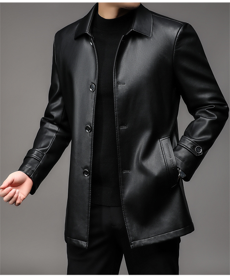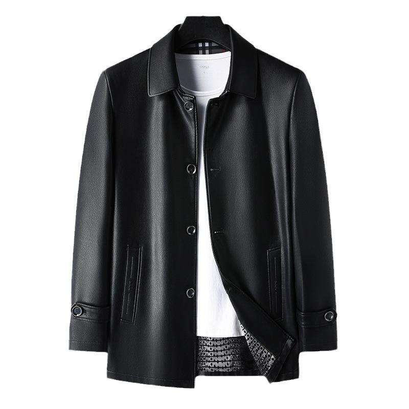 Men's new down leather jacket with a collar and leather jacket