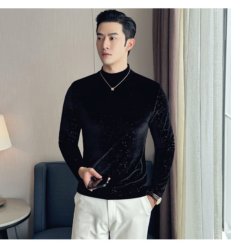 Men's new fashionable semi high neck knitted sweater