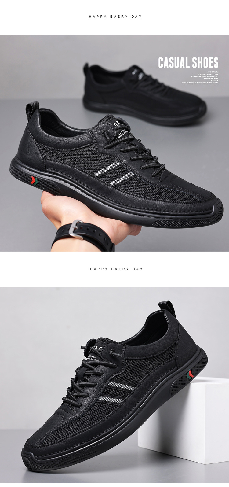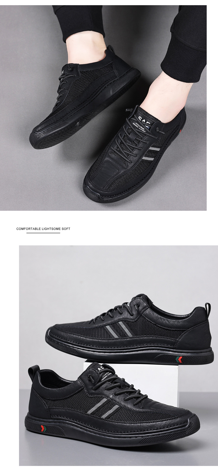 Summer New Men's Mesh Breathable Casual Leather Shoes